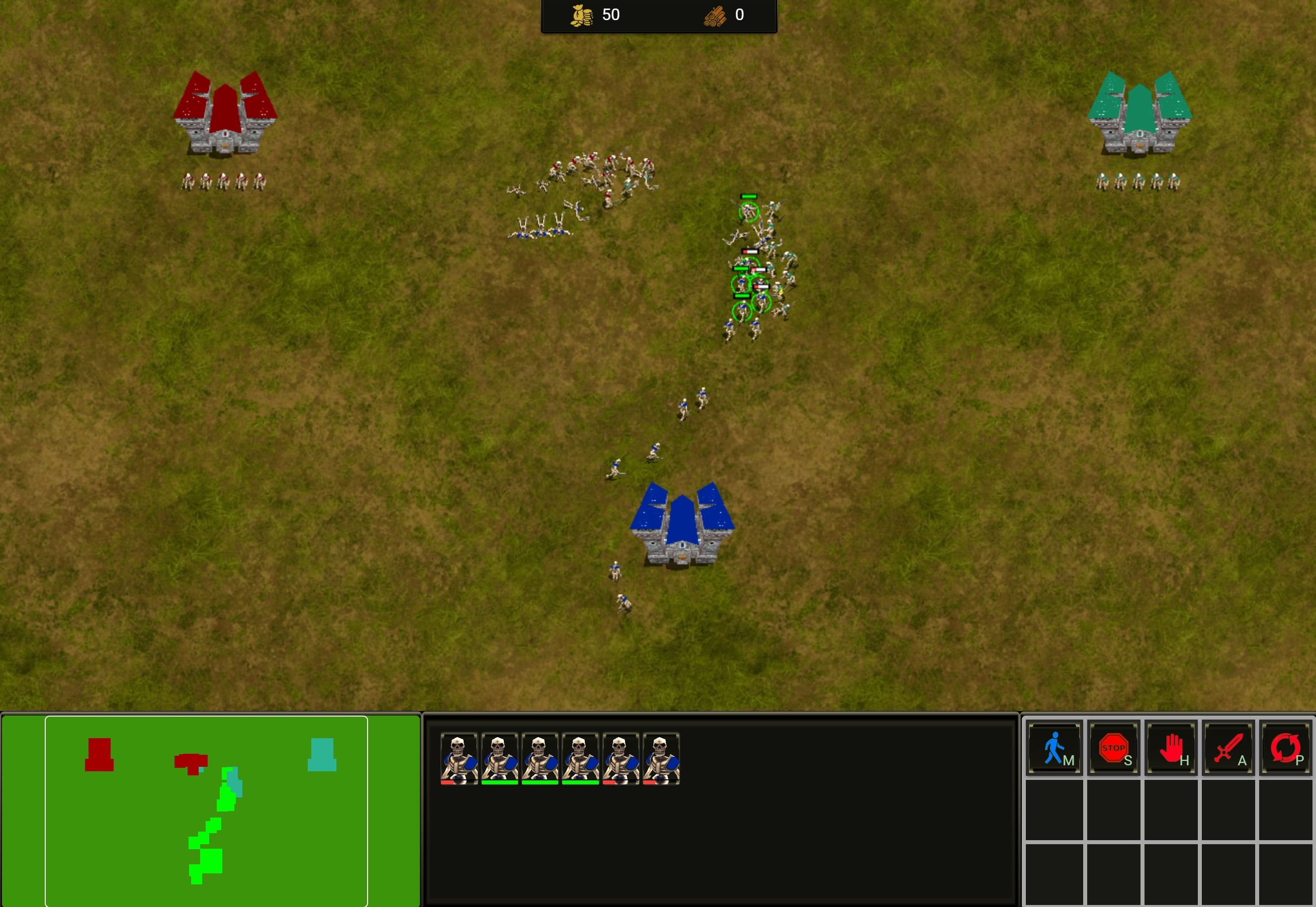 Build up your army and attack your enemies. You have units spawn every second. As you kill more enemies, you get gold to buy more units that are constantly spawning. But, so can the computers. Make sure to play intelligently to ensure your army is always the strongest.